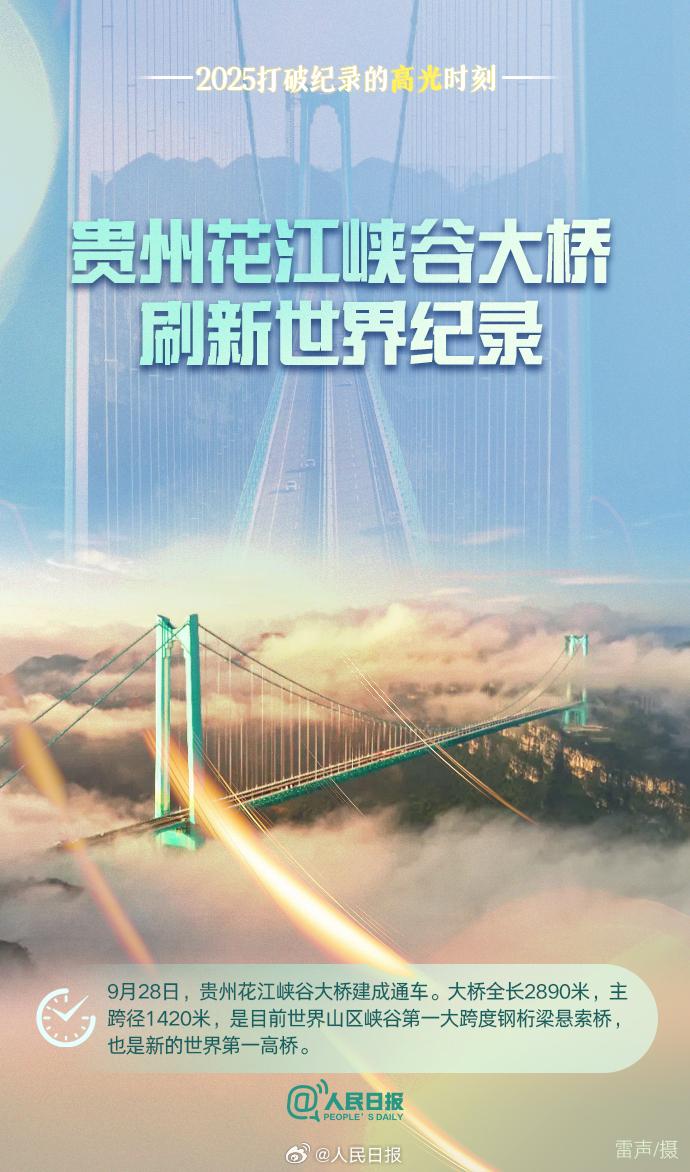 贵州花江峡谷大桥刷新世界纪录、“领航号”盾构机掘进突破万米大关、中国影史动画电影票房创纪录、张展硕于子迪等体育小将全运会屡破纪录……2025这些突破振奋人心,骄傲回顾!
