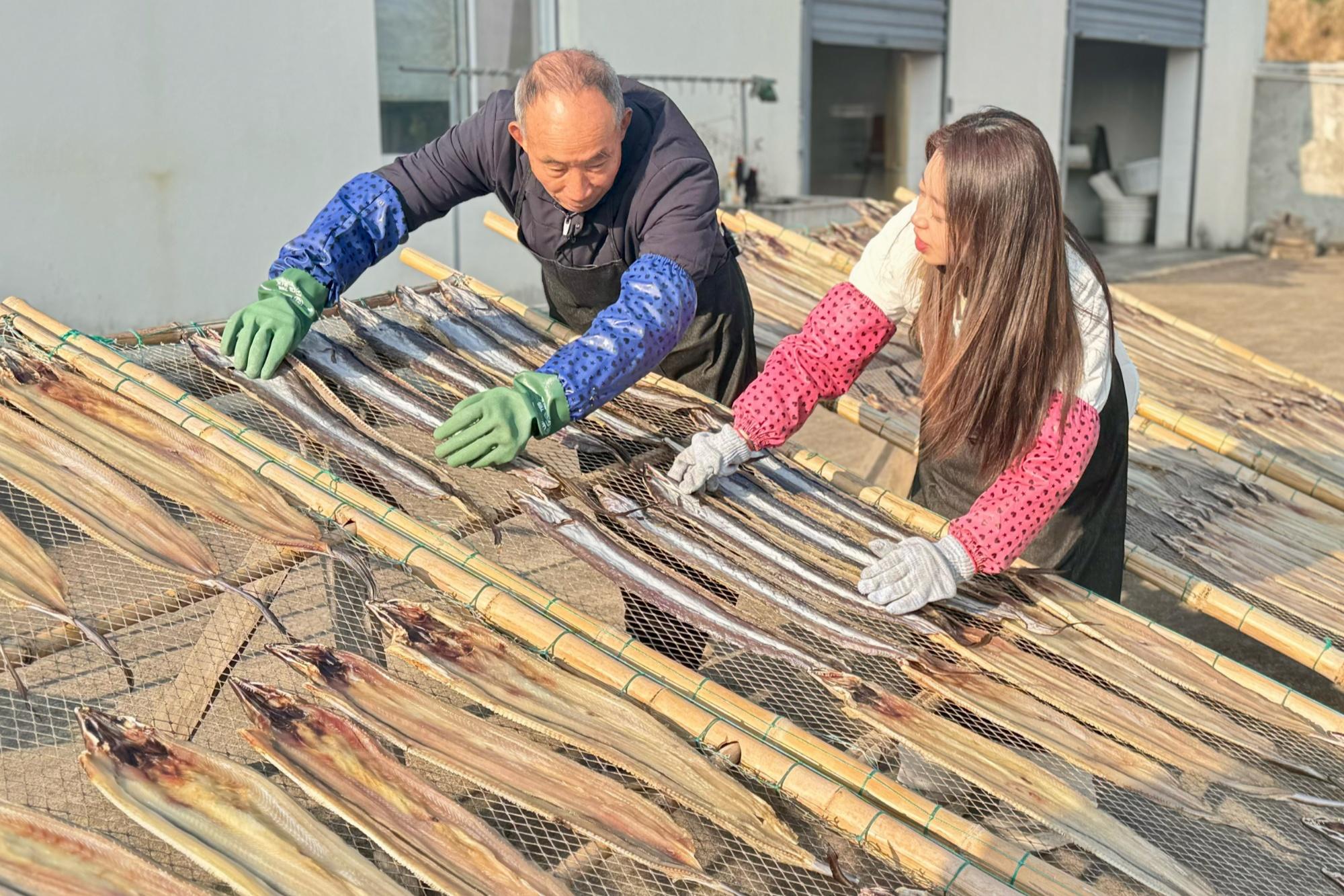 该厂生产的鳗鱼、马鲛鱼、鱿鱼、黄鱼、虾等鲞类产品,在北京、上海、南京等城市供不应求,年销售额超过500万元。以前靠盐和阳光保存海鲜的老手艺,现在还融入了智能化烘干、真空包装等现代技术,鱼鲞保质期延长至半年以上,通过电商平台销往全国各地,从“农家特产”升级为“网红爆款”。