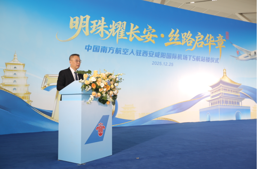 西部机场集团有限公司副总经理汤涛表示:“今年是‘十四五’收官之年,西部机场集团在机场建设、市场发展、品质提升等方面斩获丰硕成果。西安、西宁机场两个三期工程顺利建成投运,保障能力和发展实力大幅提升。随着T5航站楼投运,西安机场在智慧运行、便捷服务和人文机场建设等方面实现质的飞跃。此次南航进驻T5航站楼,必将迎来新的发展机遇,必将实现运营效率与服务品质的双重跃升。希望双方以此为契机,在航空快线、通程航班及‘空中丝绸之路’建设等领域深化合作,携手推进西安国际航空枢纽实现高质量发展。”