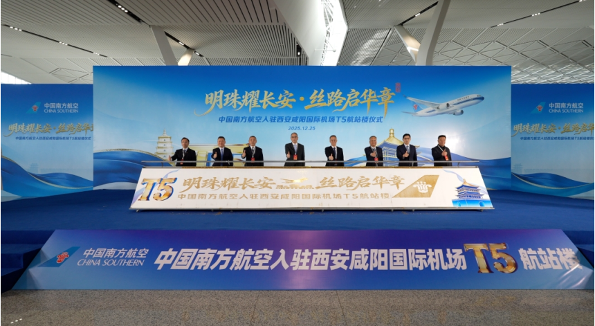 三秦都市报-三秦网讯(刘京明)2025年12月24日22时21分,中国南方航空CZ3231航班平稳降落并滑至西安咸阳国际机场T5航站楼,标志着南航所有实际承运的国内进出港航班正式转场至T5航站楼运营。为迎接这一历史性时刻,南航以“首班到港”“入驻仪式”“贵宾厅开厅”等系列仪式,全方位展现新航站楼的枢纽功能与南航的升级服务。