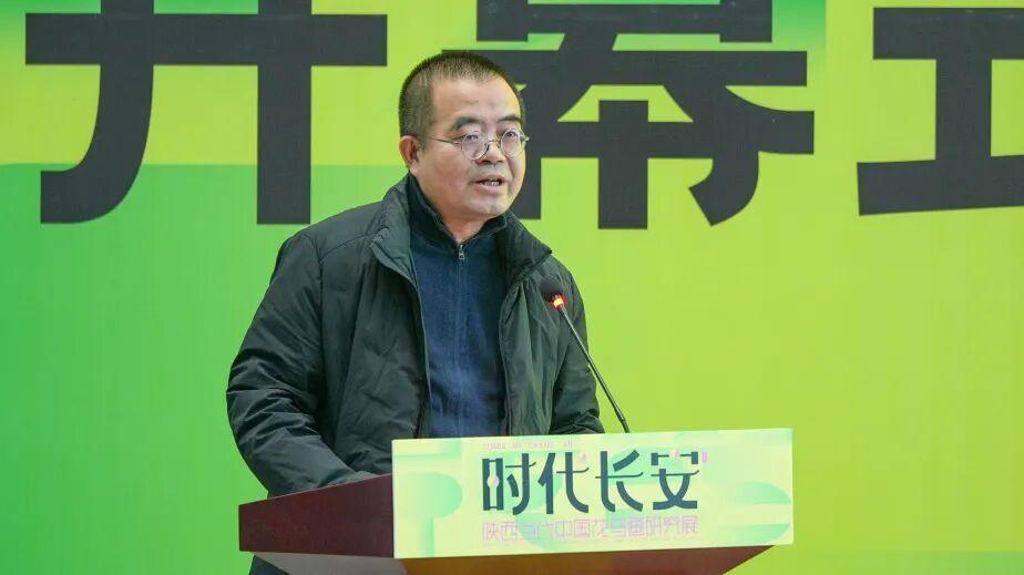 王潇首先对展览工作人员的辛勤付出致以谢意。他介绍,“时代长安”是本馆近三年来打造的年度品牌大展,本届聚焦花鸟画研究,系统梳理了陕西花鸟画从长安画派传统到当代创新的发展脉络。展览以文献与作品相结合的形式,呈现了老中青三代艺术家的创作,展现了笔墨传承与时代演变。他表示,宁夏与陕西同属西部文化腹地,此次展览不仅展示了陕西花鸟画的成就,更为两地艺术家搭建了交流平台,未来将建立长效合作机制,共同推动中国美术事业发展。