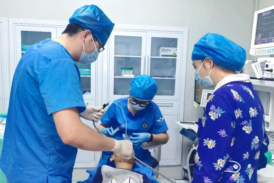 手术当日,患儿在麻醉药物作用下安静入睡。麻醉团队在保留自主呼吸的条件下,借助电子纤支镜顺利完成气管插管,攻克了第一道难关;除常规监护外,脑电监精准把控麻醉深度,经胸超声实时监测心肺功能;精细的液体管理与通气策略,保障了呼吸循环稳定;与儿童口腔科团队紧密配合,采用多模式镇痛,为术后快速平稳苏醒奠定基础。手术期间,患儿生命体征平稳,麻醉与手术团队配合默契,高效完成了牙科治疗。