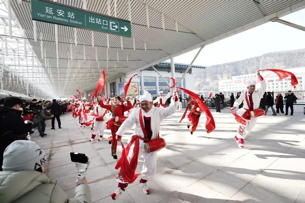 三秦都市报-三秦网讯(记者 石喻涵 代泽均)12月26日,西延高铁首发列车驶入延安站,车厢外腰鼓打得欢,72岁的陈建民老人热泪盈眶,紧紧攥着女儿陈娟的手反复念叨:“太快了,太好了!”
