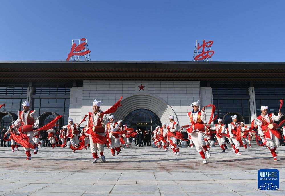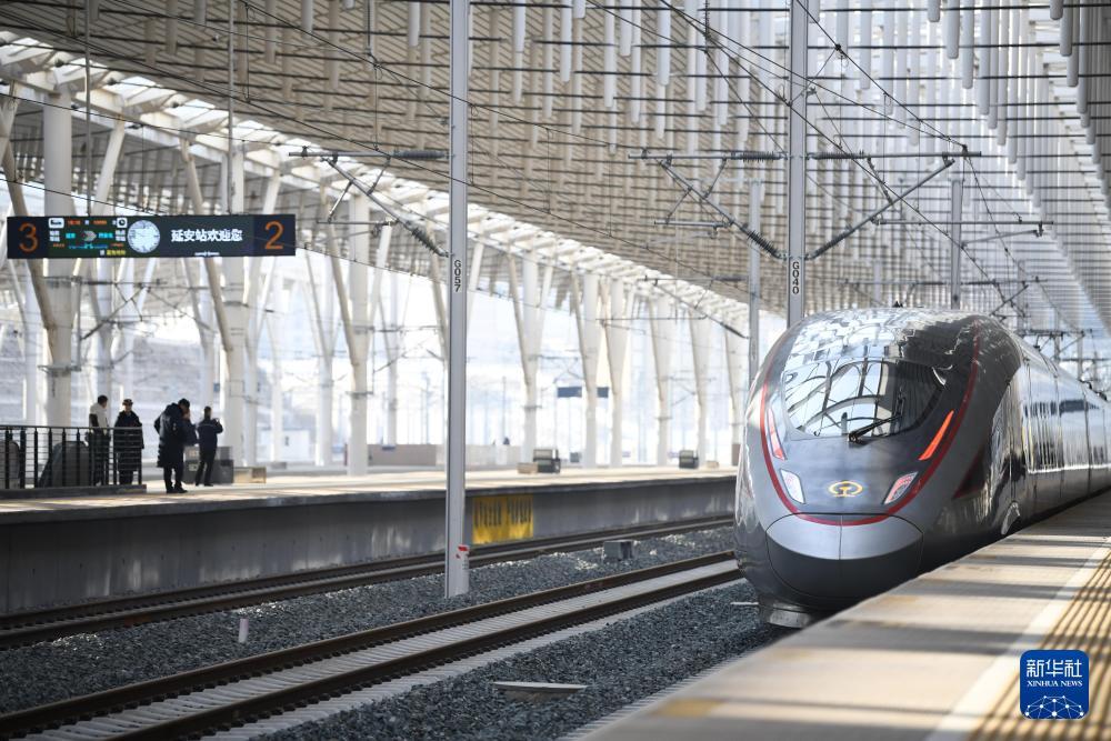 2025年12月26日,西延高铁首发列车从延安站驶出。新华社发(刘一江 摄)西延高铁