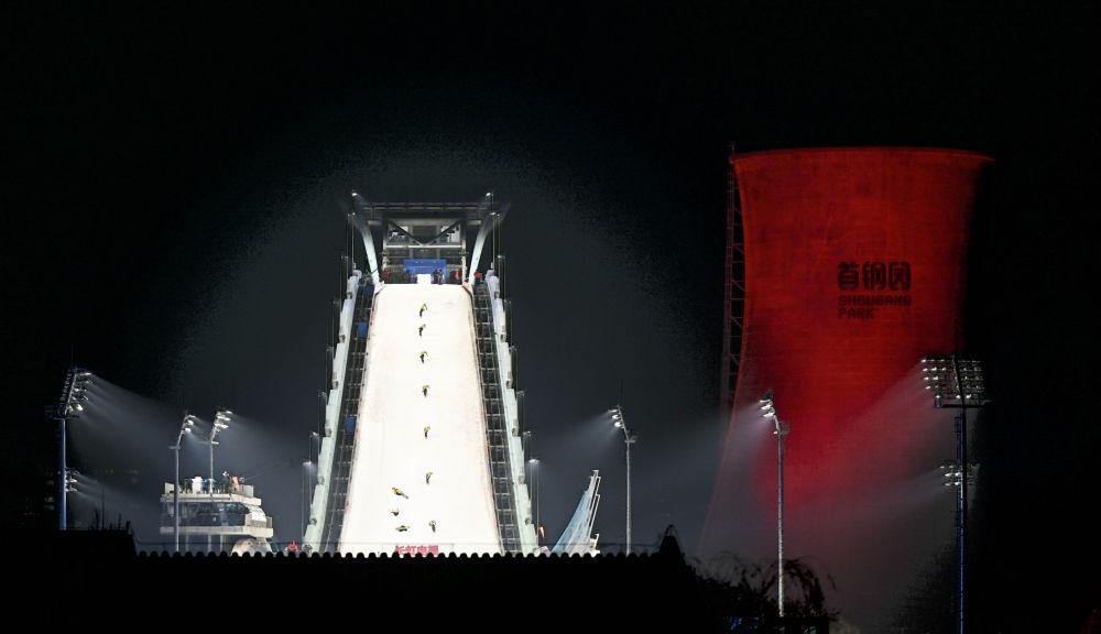 ↑12月6日,中国选手苏翊鸣在2025-2026赛季国际雪联单板及自由式滑雪大跳台世界杯北京站单板滑雪大跳台男子组决赛中完成第一跳。新华社记者 陶希夷 摄