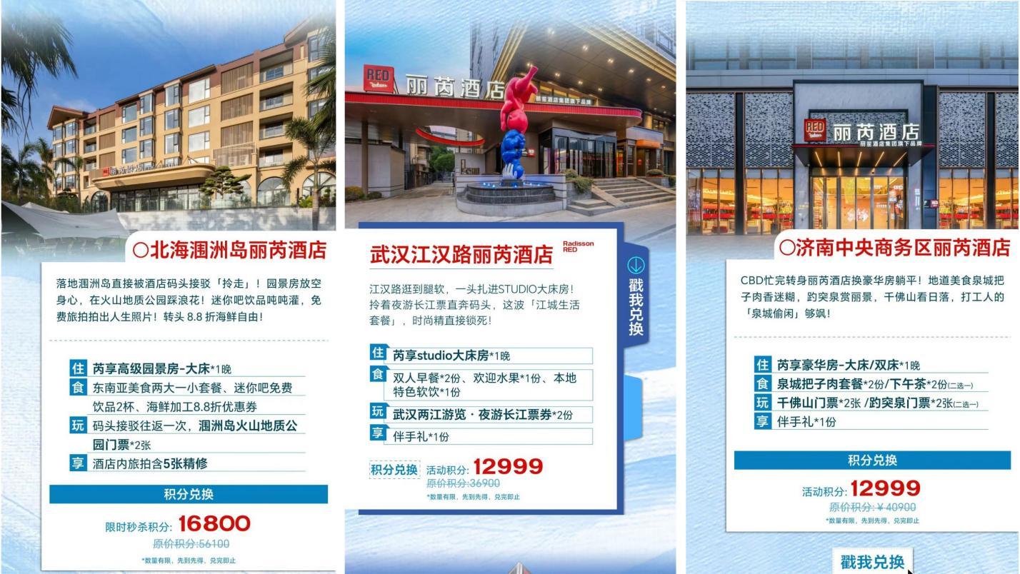 LIVE体验之外,今年6月,锦江荟还创新推出“新店套餐积分兑”活动——例如,北海涠洲岛丽芮酒店的新店套餐中,不仅有高级园景房、东南亚美食家庭套餐、海鲜加工优惠券,还包含码头接驳、涠洲岛火山地质公园门票2张及旅拍等,限时秒杀仅需16800积分,相当于市场价3折。以及即将上线针对50岁以上女士及60岁以上男士的银龄专属特权。