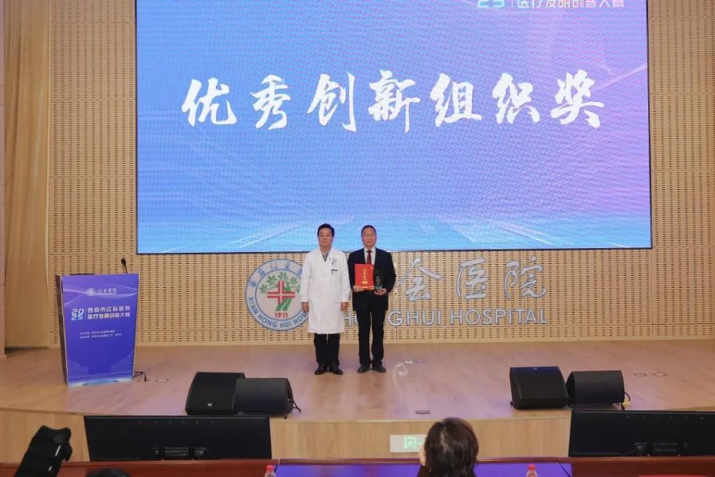 经过激烈比拼,大赛各大奖项一一揭晓。惠应应团队的《一种上肢血管的柔性束缚止血器》等4个项目获优胜奖;乔锋团队的《骨科机器人的研制与临床应用》等3个项目斩获创新铜奖;王彪团队、徐超团队的项目分获创新银奖;张维杰团队的《双向梯度孔隙设计骨缺损修复矩阵》摘得创新金奖。脊柱病医院凭借三项入围决赛的高质量项目,荣获“优秀创新组织奖”。与会领导分别为获奖团队及科室颁奖,并向评委颁发感谢状。