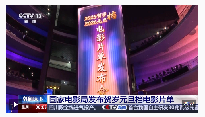 12月28日,由国家电影局主办,电影频道、中国电影博物馆承办的2025贺岁档、2026元旦档电影片单发布会在北京举行。
