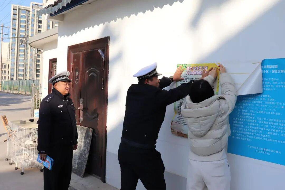 警社共治聚合力,敲门入户送安全。阎良交警充分释放“531”警务机制优势,扎实开展交通安全“敲门行动”。宣传民警下沉辖区各社区、村组,逐户走访群众家庭,用接地气的语言剖析酒驾醉驾、电动车未佩戴安全头盔、驾乘机动车不系安全带等交通违法行为的现实危害,现场解答群众出行疑问。同时,联合社区志愿者在重点路口设置交通文明示范岗,常态化开展交通违法行为劝导整治;在社区宣传栏、单元楼门口等醒目位置,广泛张贴《党员干部文明交通倡议书》,号召党员干部以身作则、率先垂范,带头遵守交通法规,主动劝导不文明交通行为,以“关键少数”带动“绝大多数”,营造“文明出行 人人参与”的浓厚氛围。