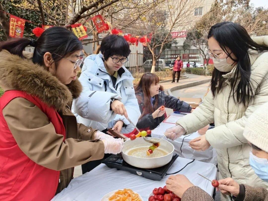 美食制作品鉴区香气四溢。糖葫芦DIY摊位前,红彤彤的山楂裹上晶莹的糖衣,酸甜可口的传统小吃唤起不少人的童年回忆。现场提供新鲜水果和熬制好的糖浆,居民亲手制作专属糖葫芦,品尝冬日里的甜蜜滋味。