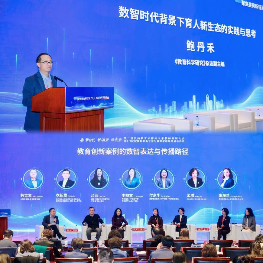 “聚焦美育新征程 AIGC赋能教育新业态”分会场,汇聚众多一线校长与技术专家。与会者立足课堂教学实际,深入研讨AIGC技术的应用潜力、实践案例及现实挑战,分享技术融入课堂、赋能教学流程再造的经验。在主旨报告环节,中国文联电影艺术中心副主任王纯围绕“影视赋能中小学素质教育”展开论述,《教育科学研究》杂志副主编鲍丹禾探讨了“数智时代背景下育人新生态的实践与思考”,西安市教育科学研究院院长解慧明以“人工智能时代的教育变革创新”为题分享见解,陕西省文艺评论家协会主席、西北大学电影学院院长张阿利则聚焦“人工智能+影视专业”实践与思考。