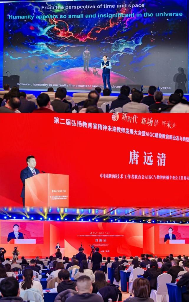 全国政协常委、中国科学院院士武向平的主旨报告,点亮了科技与教育融合的新方向。这是一场践行教育家精神的思想盛会,一次AIGC赋能教育的创新探索;学前启蒙播撒科学种子,基础教育夯实育人根基,高等教育勇攀创新高峰,哲学社会科学涵养教育温度。以教育之名,赴时代之约,共绘未来教育新图景!中国新闻技术工作者联合会AIGC与数智传播专委会主任、中国传媒大学主流融媒体研究中心主任唐远清,陕西文化教育题材影视剧创作办主任、陕西省中小学影视教育协会会长刘瀚辰在大会开幕式致辞。