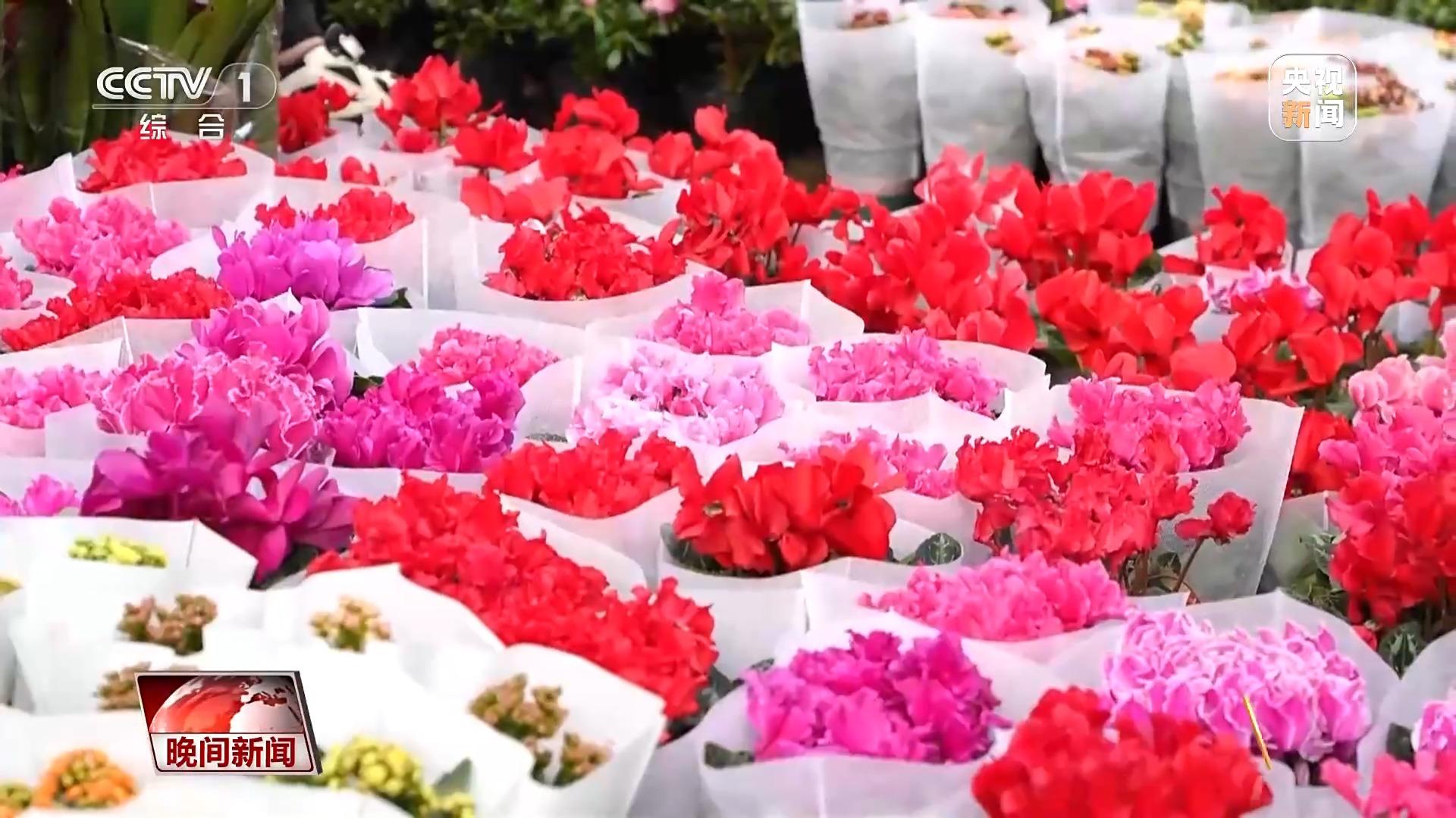 在山东日照的莒州花卉市场,一大早就已是人声鼎沸。一些摊位前,象征“鸿运当头”的红掌、寓意“幸福到来”的蝴蝶兰等热门年宵花,被放在了最显眼的位置。消费者在花海中,精心挑选自己心仪的年宵花。