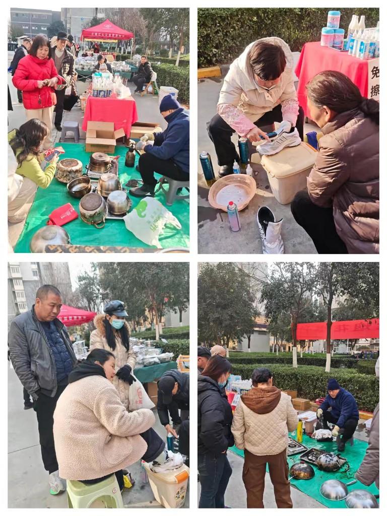 免费服务区域人气满满,现场热闹非凡。向居民朋友们提供旧衣回收、免费理发、刷鞋、洗锅、磨刀等多项便民服务,每一项服务都像是一把钥匙,为居民们开启了便利生活的大门。居民们热情高涨,纷纷带着需要打理的物品前来,有的拿着许久未磨的菜刀,希望能重新找回它的锋利;有的提着沾满污渍的鞋子,期待能恢复它原本的洁净;还有的带着老旧的锅具,渴望让它再次焕发光彩。