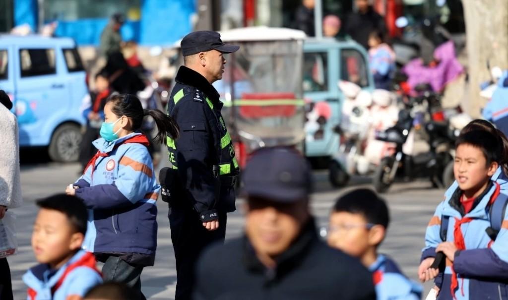 “警察叔叔,早上好!”迎着深秋的寒风,一声声清脆的问候里,校服与警服再次相遇,为这个秋天增添一抹温暖。在护学时间安排上,乾县公安严格落实"提前到岗、延时撤岗"工作机制。每日上学前20分钟、放学后20分钟,派出所民警及巡特警、交警准时到岗,在各学校门口及周边主干道、十字路口等重点区域设立固定值守点。