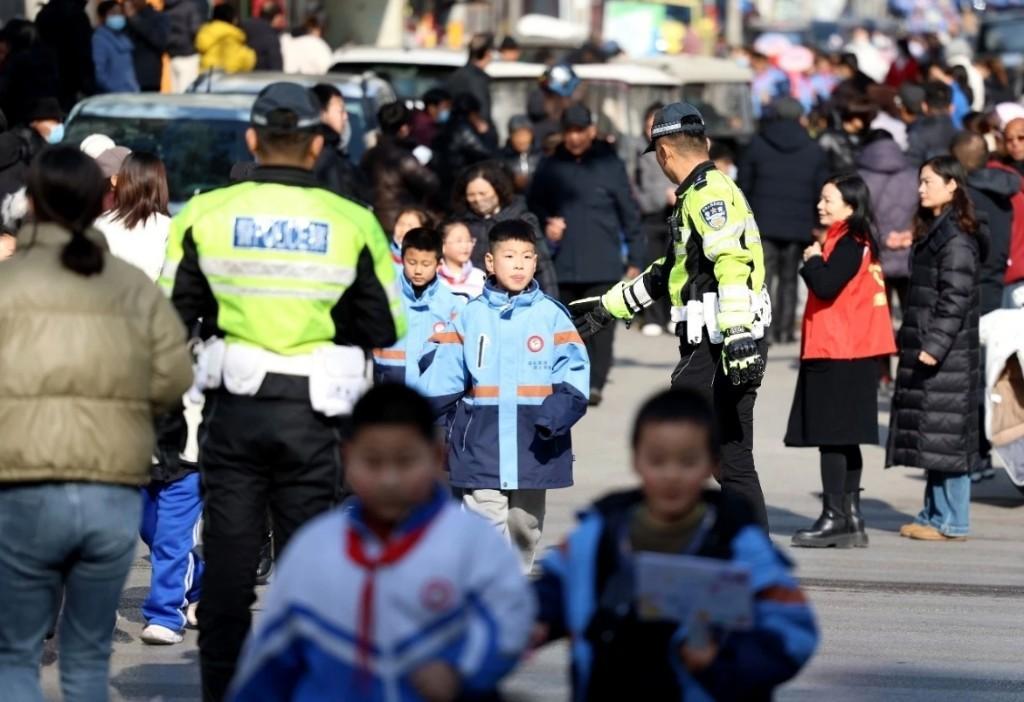 针对上下学高峰时段人流、车流密集的特点,民辅警分工协作,一方面高效疏导交通,引导接送车辆"即停即走",规范临时停车秩序,全力缓解校园周边交通拥堵;另一方面细致加强人员疏导,紧盯校门口人员流动情况,逐一排查化解潜在安全风险,确保学生进出校园的"绿色通道"畅通无阻。