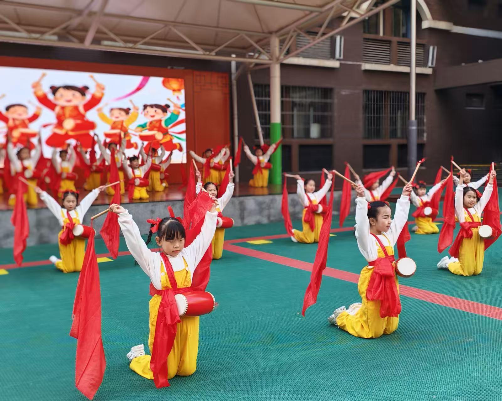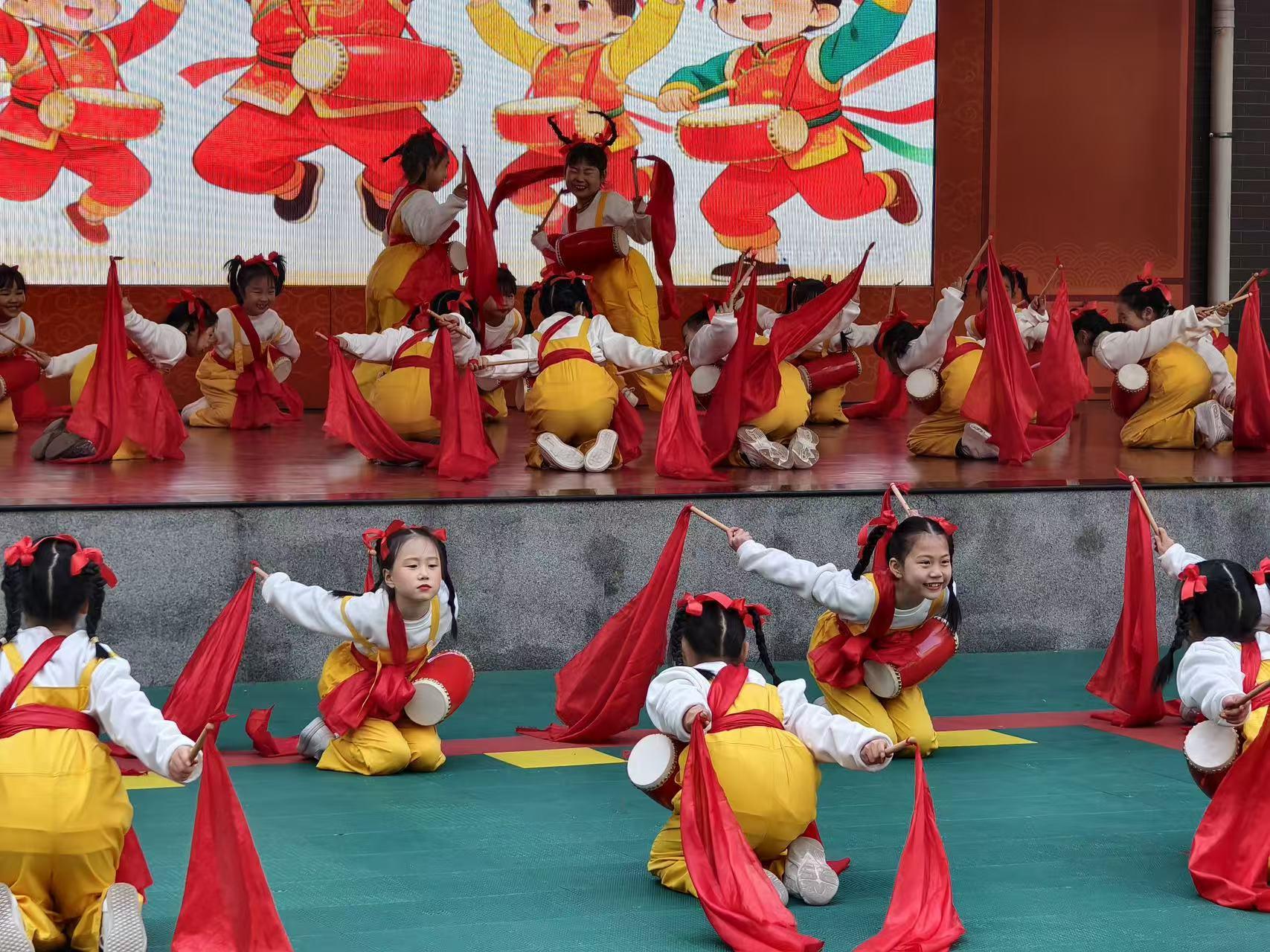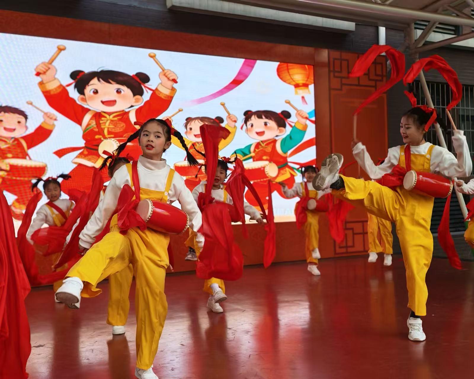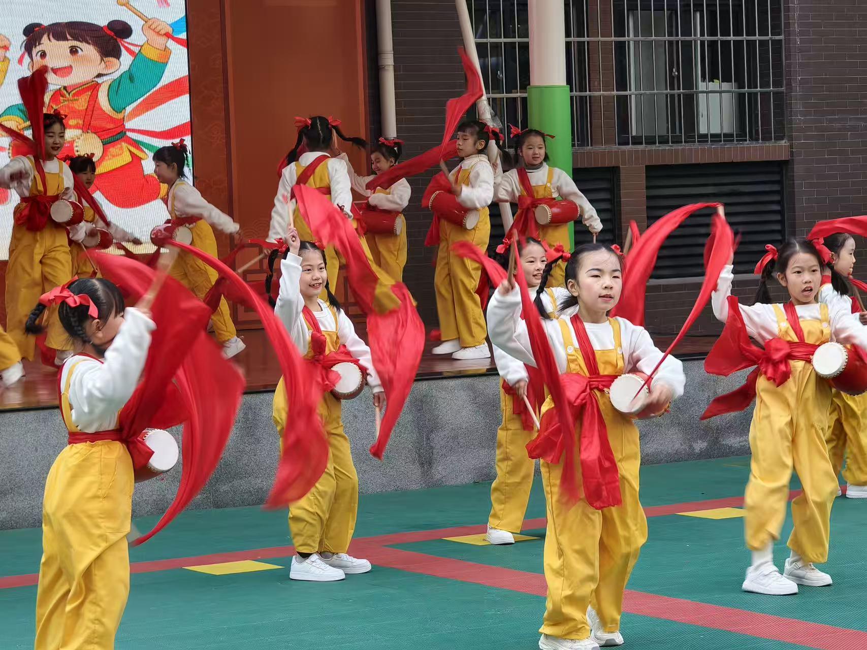 表演现场,铿锵鼓点响彻校园,队员们迈着整齐步伐变换队形,时而方阵列队气势如虹,时而蝴蝶穿梭灵动活泼。红绸在阳光下划出优美弧线,稚嫩脸庞洋溢自信笑容,精彩表演赢得师生和周边居民阵阵喝彩。不少路过家长驻足观看,纷纷拿出手机记录,感慨“传统文化进校园,孩子们学得开心,我们看着也高兴”。