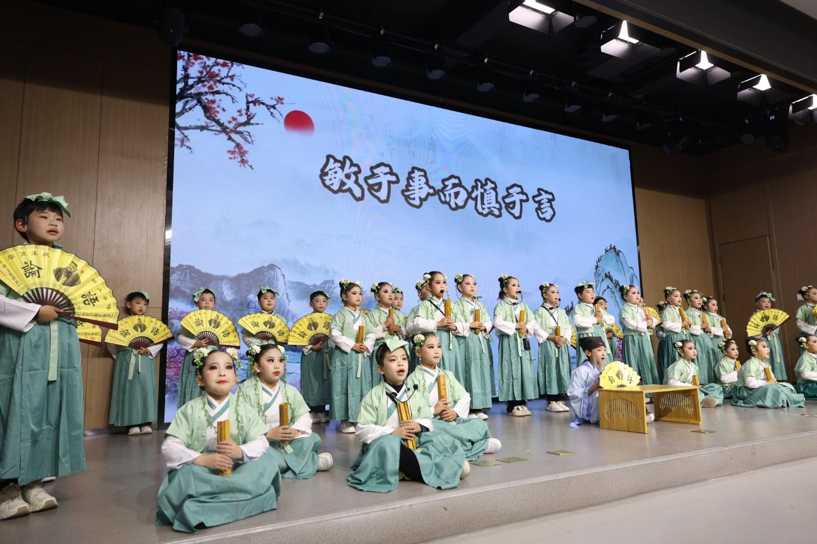 展演尾声,全场齐诵《文脉永续,少年担当》,从“仁者安仁”到“言而有信”,从“学思不辍”到“三省吾身”,琅琅诵读声中,经典文化的种子悄然播撒进孩子们的心田。