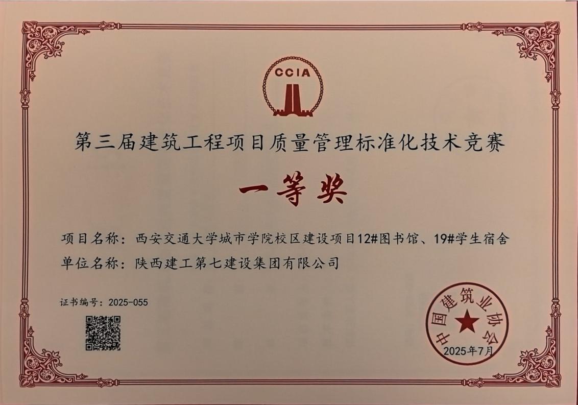 三秦都市报-三秦网讯(殷怡怡)近日,由中国建筑业协会质量管理与监督检测分会主办的建筑工程项目质量管理标准化暨质量专家经验交流会在广西南宁顺利召开。由陕建七建集团二公司承建的西安交通大学城市学院校区建设项目荣获第三届建筑工程项目质量管理标准化技术竞赛一等奖。