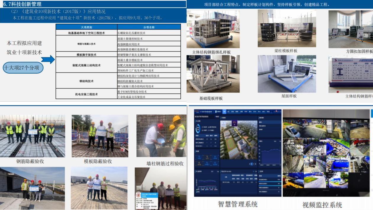 建设过程中,项目严守质量生命线,推行全流程精细化管控。技术层面,深度应用《建筑业10项新技术(2017版)》10大项27个分项,创新采用BIM三维建模+AR虚拟样板融合模式,提前优化管线排布、规避设计偏差,高效解决图书馆回字形结构、宿舍E字形布局施工难题;针对土方开挖、高大模板等危大工程,编制专项方案并严格执行专家论证流程,强化过程技术交底与现场指导,确保施工合规有序。质量管控上,落实“策划先行、样板引路、一次成优”理念,钢筋绑扎、外墙施工等分项工程均先建样板,经建设、设计、监理多方联合验收确认后再大面积推进;关键工序实行联合举牌验收,材料进场严格执行三方核验、见证取样制度,依托质量巡检系统实现问题整改闭环管理,分部、分项工程验收合格率均达100%。同时,项目深耕绿色施工与科技创新,积极应用信息管理技术,通过运用质量管理系统、安全管理系统、进度管理系统、技术管理系统、塔吊吊钩可视化、智能监控系统、扬尘监控系统、0A办公系统、BIM+智慧工地、BIM技术综合管线布置等可以随时掌握现场动态,更好地进行管理。该项目已成功通过省、市级绿色施工示范工程及建筑优质结构工程中期验收。