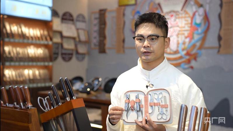 黎勇在直播间拿起一款名为“海棠依旧”的五金产品说,“这是一款专为女性打造的指甲护理套装,取这个名字的灵感来源于我们大足的区花‘海棠’。别处的海棠大多无香无实,唯独大足海棠,有香气,结果实。”这独一份的特质,仿佛为五金也赋予了生命。