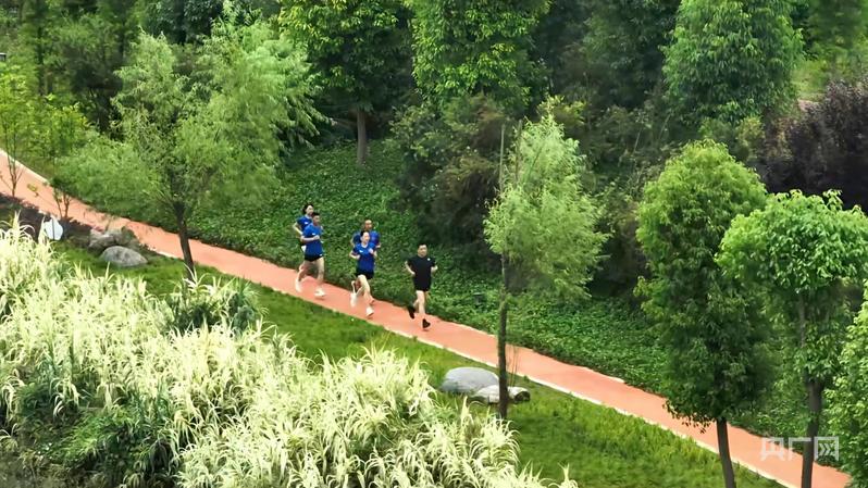 居民沿着濑溪河龙水段河岸跑步(央广网发 陈智列 摄)