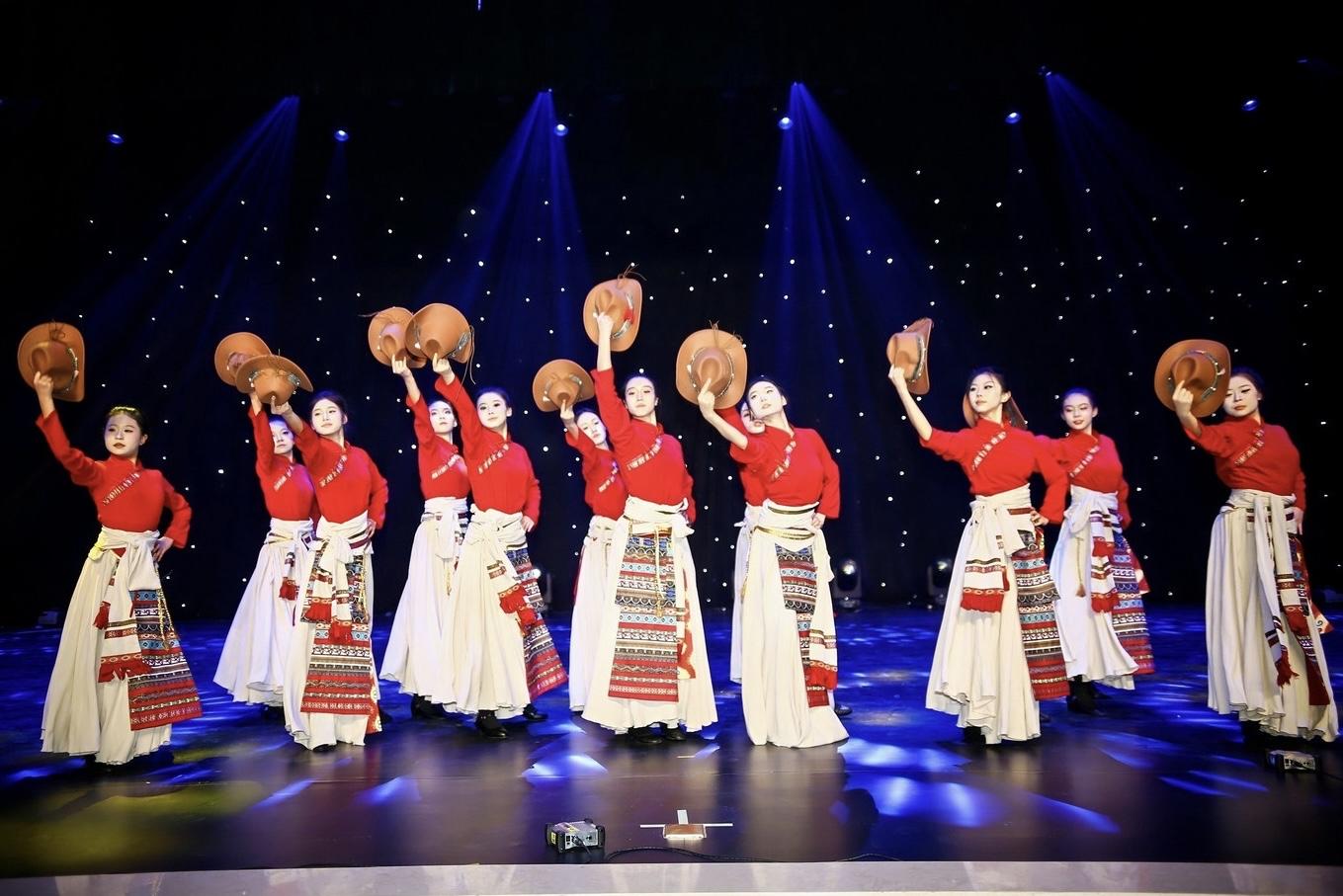 值得一提的是,本次汇演不仅有学生的精彩展示,教职工带来的《民族舞串烧》更将活动推向高潮。阿瓦族的豪迈、维吾尔族的灵动、藏族的虔诚在舞台上交融绽放,老师们褪去讲台的严肃,以饱满热情舞动中华风韵,彰显出师生同心、其乐融融的校园氛围。此外,舞台剧《金陵十三钗》、朗诵《英雄的号角》等节目,以艺术形式回望历史、致敬英雄,传递新时代青年的责任与担当;《淋雨一起走》《我的未来式》等歌曲,则唱出了少年人不惧风雨、勇敢追梦的青春宣言。