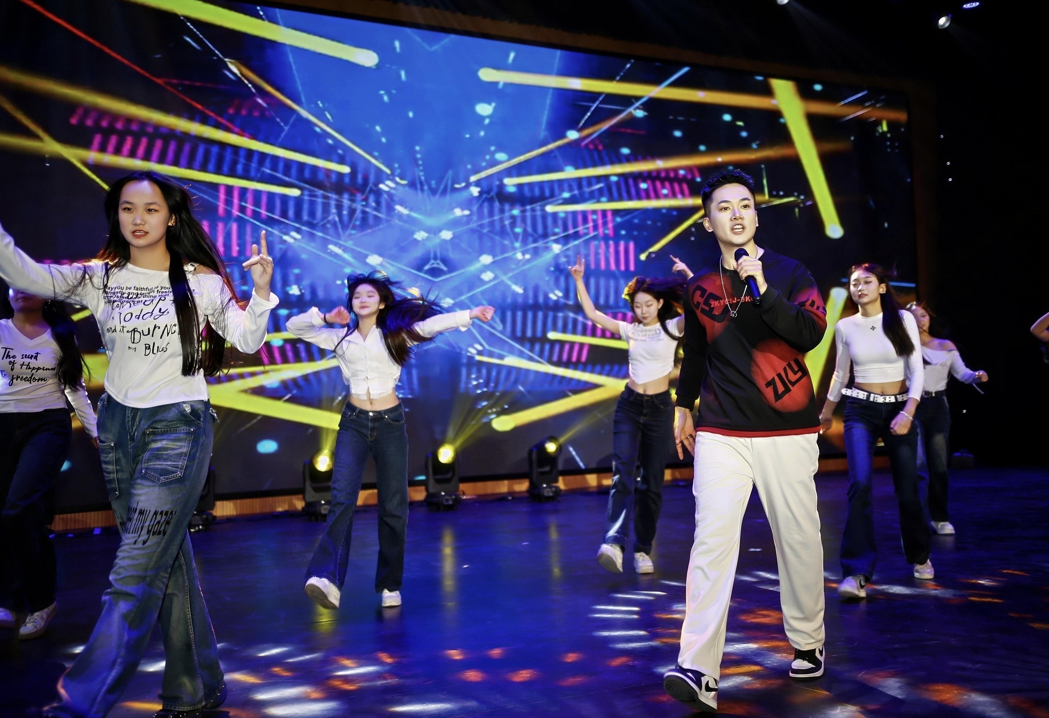 传统文化与青春潮流在舞台上交织碰撞,焕发别样光彩。高一学子演绎的戏曲《穆桂英挂帅》唱腔铿锵、身段传神,令观众沉浸式感受“巾帼不让须眉”的家国情怀;钢琴弹唱《青玉案·元夕》则以悠扬琴声与婉转歌喉,再现辛弃疾笔下“灯火阑珊处”的古典意境。而拉丁舞的热情动感、摩登舞的优雅浪漫、街舞《Rhythm Loop》的激昂节奏,则展现出当代青年多元的艺术审美与蓬勃活力。