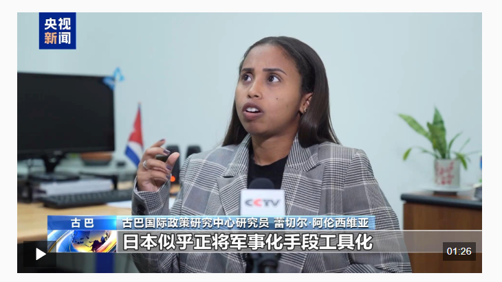 古巴国际政策研究中心研究员 蕾切尔·阿伦西维亚:日本似乎正将军事化手段工具化,为所谓“合法自卫”提供借口,并纳入外交政策框架。这些言论并非孤立事件,必将对国际秩序尤其是区域秩序造成冲击。