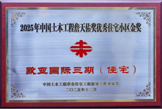 三秦都市报-三秦网讯(记者 谢斌)中国土木工程学会主办的2025年度优秀住宅小区技术交流会于12月26日至27日在北京举行。会上,由陕建七建集团承建的欧亚国际三期(住宅)项目凭借卓越的综合品质,从全国众多优秀参评项目中脱颖而出,以综合排名第二的优异成绩,荣获2025年中国土木工程詹天佑奖优秀住宅小区金奖。