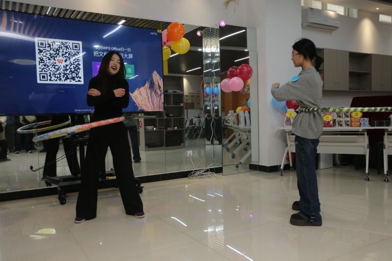 活动伊始,动感十足的呼啦圈竞技就点燃了全场的热情。个人赛中选手们各展绝技,转、跳、绕等动作行云流水,精彩的表现引得台下掌声、欢呼声此起彼伏;团体赛“一圈到底”项目考验着团队的协作默契,在携手攻克挑战的过程中,呼啦圈快速穿梭传递,团队凝聚力也在阵阵欢笑中悄然汇聚。