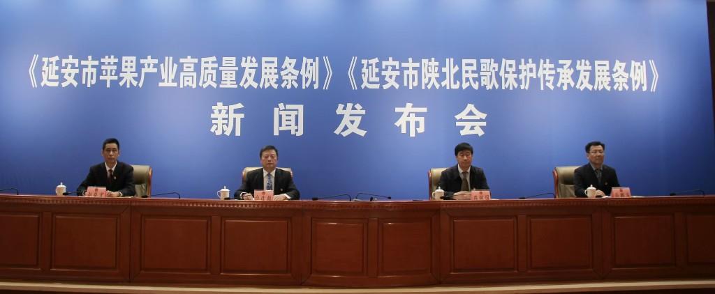 三秦都市报-三秦网讯(记者 张永罗)12月29日,延安市人大常委会召开新闻发布会,公布《延安市苹果产业高质量发展条例》与《延安市陕北民歌保护传承发展条例》两部地方性法规。两部法规将于2026年1月1日起正式施行,为当地特色产业提质升级与非物质文化遗产活化传承筑牢法治屏障。