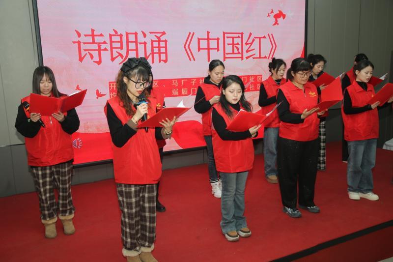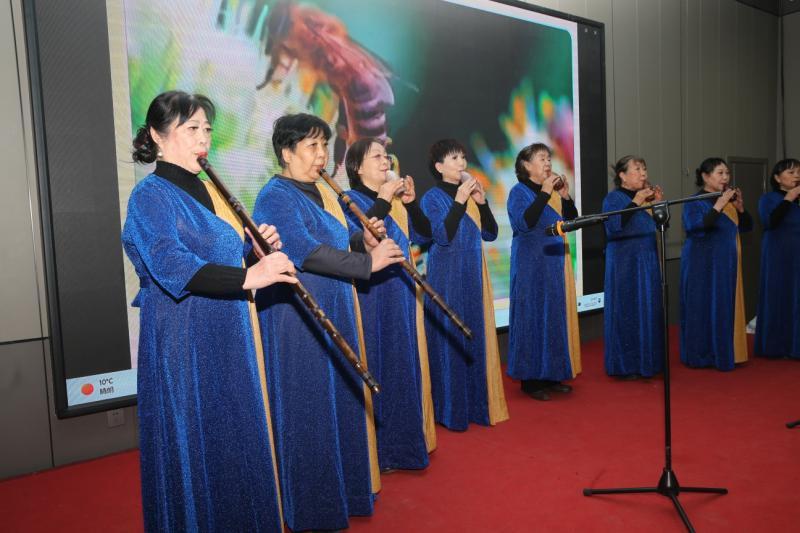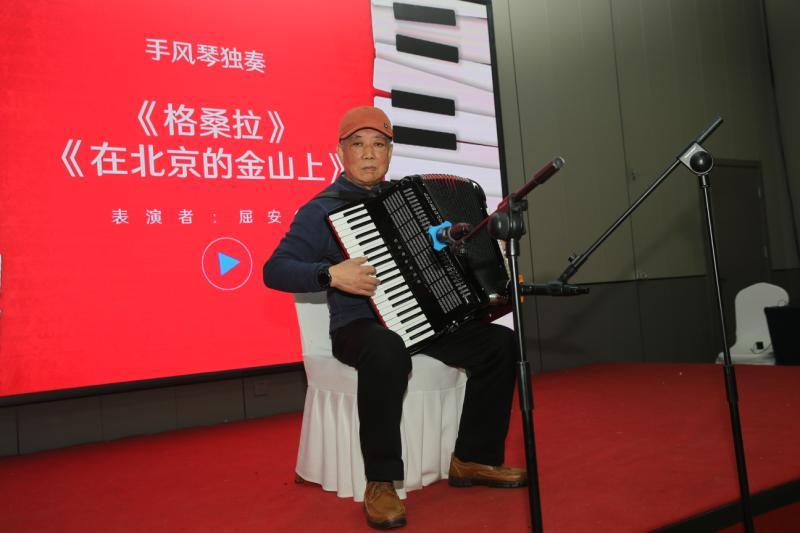 活动在男声小合唱《弹起我心爱的土琵琶》中温情启幕,低沉舒展的和声唤起在场老党员的往昔记忆。紧接着,12位社区工作者带来铿锵有力的诗朗诵,传递出矢志不渝的坚定信仰,台下观众轻声跟诵,掌声与快门声交织成动人乐章。埙乐演奏古韵悠扬,尽显中华传统文化的深厚底蕴;红绸翻飞间,民族舞《站在草原望北京》与藏舞《娥嫚姑娘》接连上演,风格迥异的舞蹈传递出同心向党的赤诚情怀。当手风琴独奏《北京的金山上》的熟悉旋律响起,全场自发合唱,欢快悠扬的歌声将活动气氛推向高潮。