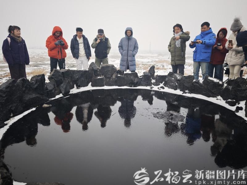 “热雪新疆e起来·一路开‘新’暨第三届新疆公路文化节”网络主题活动网络名人代表,在克拉玛依市黑油山景区参观。石榴云/新疆日报记者 宋海波 摄