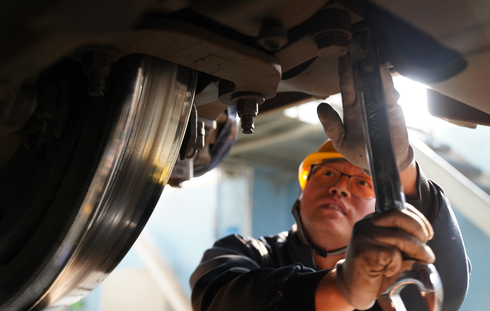 为保障新线运营与假日出行双重需求,该段全面优化生产组织,针对西延高铁桥隧比高、地形复杂的线路特征,选拔抽调20名骨干随车机械师担任值乘任务,同时,该段制定5方面10项关键整修项点,重点强化动车组走行部、制动系统、高压设备等核心部件的精检细修。结合冬季检修重点,一方面开展遗留故障销号,严格落实电气设备、线路管路、空调系统及电加热伴热装置的防寒整治标准;另一方面对西延高铁CR400BF-Z型复兴号动车组的车顶受电弓、绝缘子等关键设备进行深度清洁与动态试验,确保适配新线运行需求。