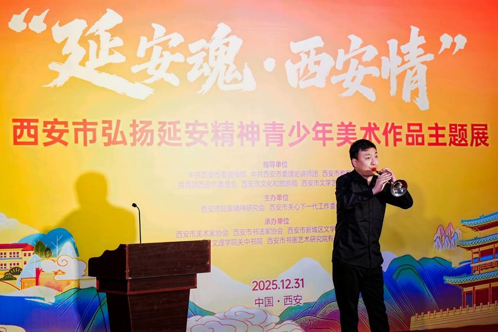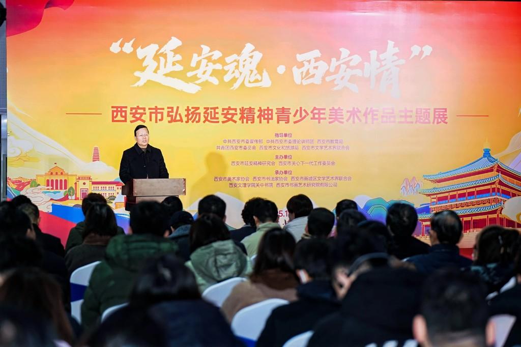 三秦都市报-三秦网讯(记者 王娇莉 见习记者 张桢璐)12月31日,“延安魂·西安情”西安市弘扬延安精神青少年优秀美术作品主题展在新城区老钢厂设计创意产业园开幕。本次展览由西安市延安精神研究会和西安市关工委联合主办,西安市委宣传部、市委理论讲师团、市委党史研究室、市文化和旅游局、团市委、市文联、市美协、市书协、西安文理学院关中书院、新城区委宣传部、新城区文联、新城区文旅体局、市书画艺术研究院、华清集团等相关单位领导嘉宾及市民群众200余人参加活动。