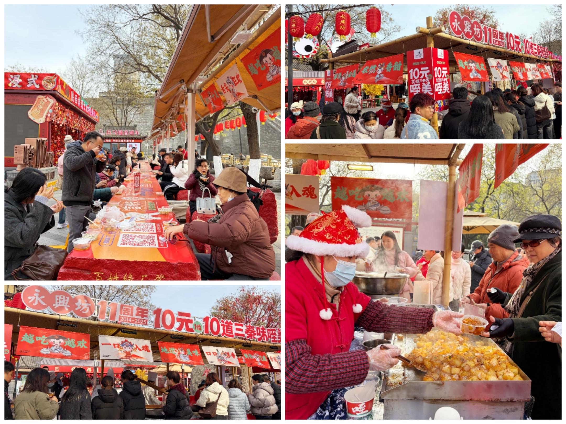 “十元·十道三秦味”活动成为亮点。在东广场,游客仅用10元即可兑换一套涵盖陕北、关中、陕南的十样特色小吃。从吴堡空心挂面、神木洋芋擦擦,到临潼柿子饼、洋县黑米甜饭,地道风味以超高性价比温暖着每位食客的胃与心。