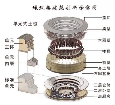 漳州市平和县绳武楼建筑剖析示意图。