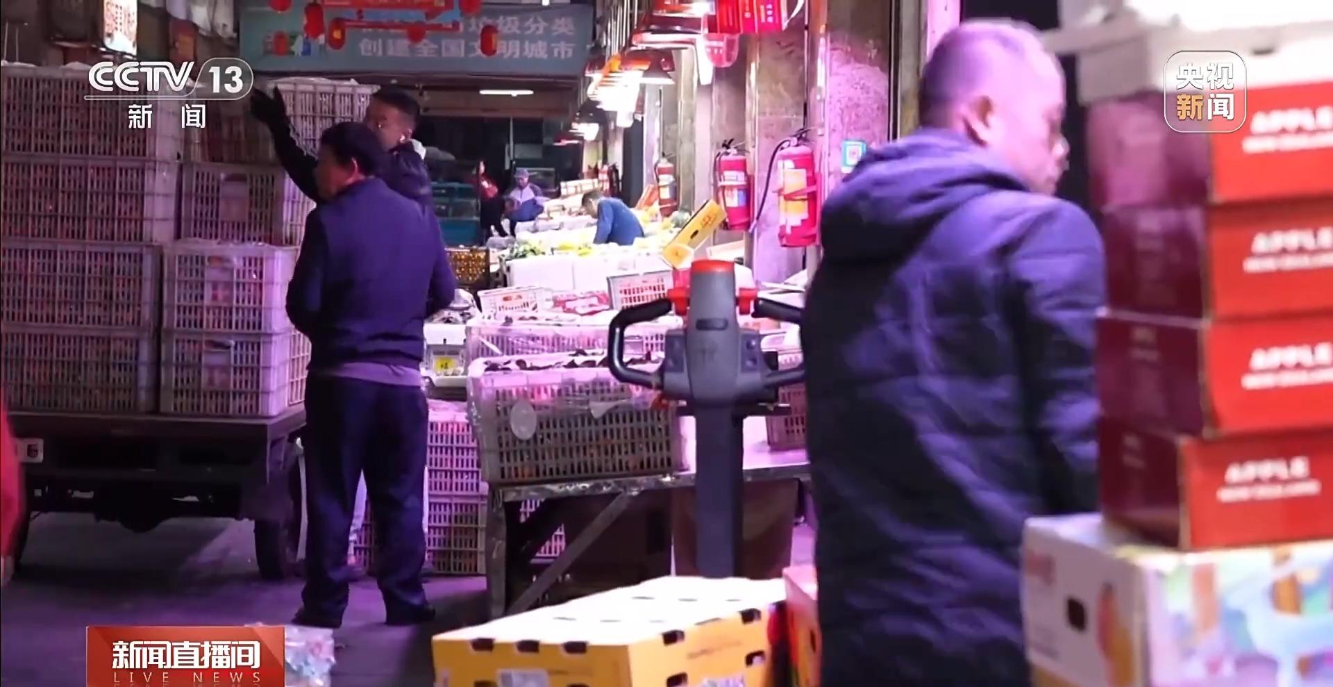 总台央视记者 高媛:凌晨4点,很多人还在家里睡觉,但是在深圳的“菜篮子”海吉星市场,一天中最忙碌的时段之一就已经开始了。很多人新年的第一口鲜就将从这里出发。