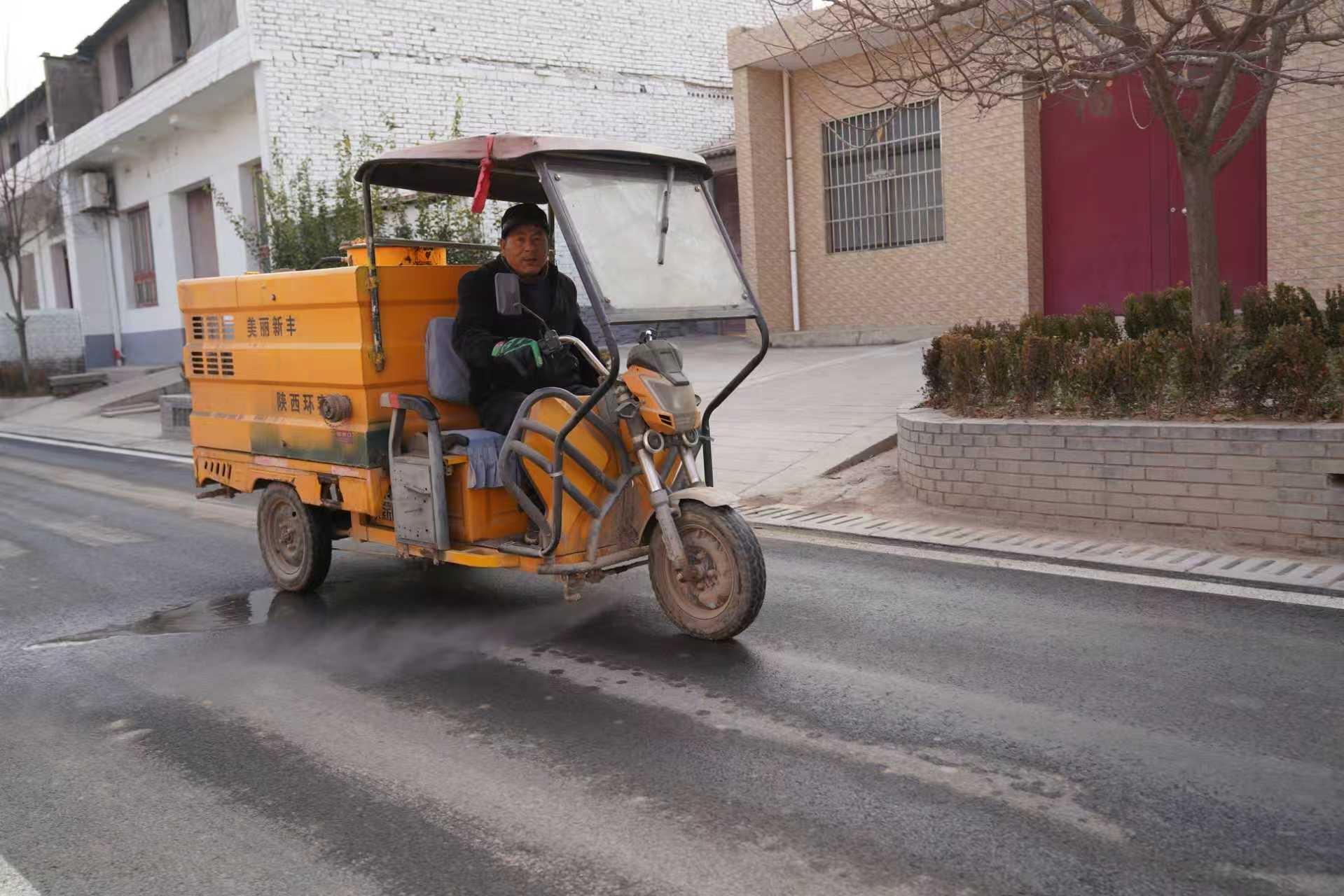 三秦都市报-三秦网讯(王三合 罗文艳 记者 胡琳)12月30日,在西安市临潼区新丰街道长条村,61岁的保洁员周广斌驾驶着小型洒水车穿梭在村内街巷,冲刷着村里的沥青路面。