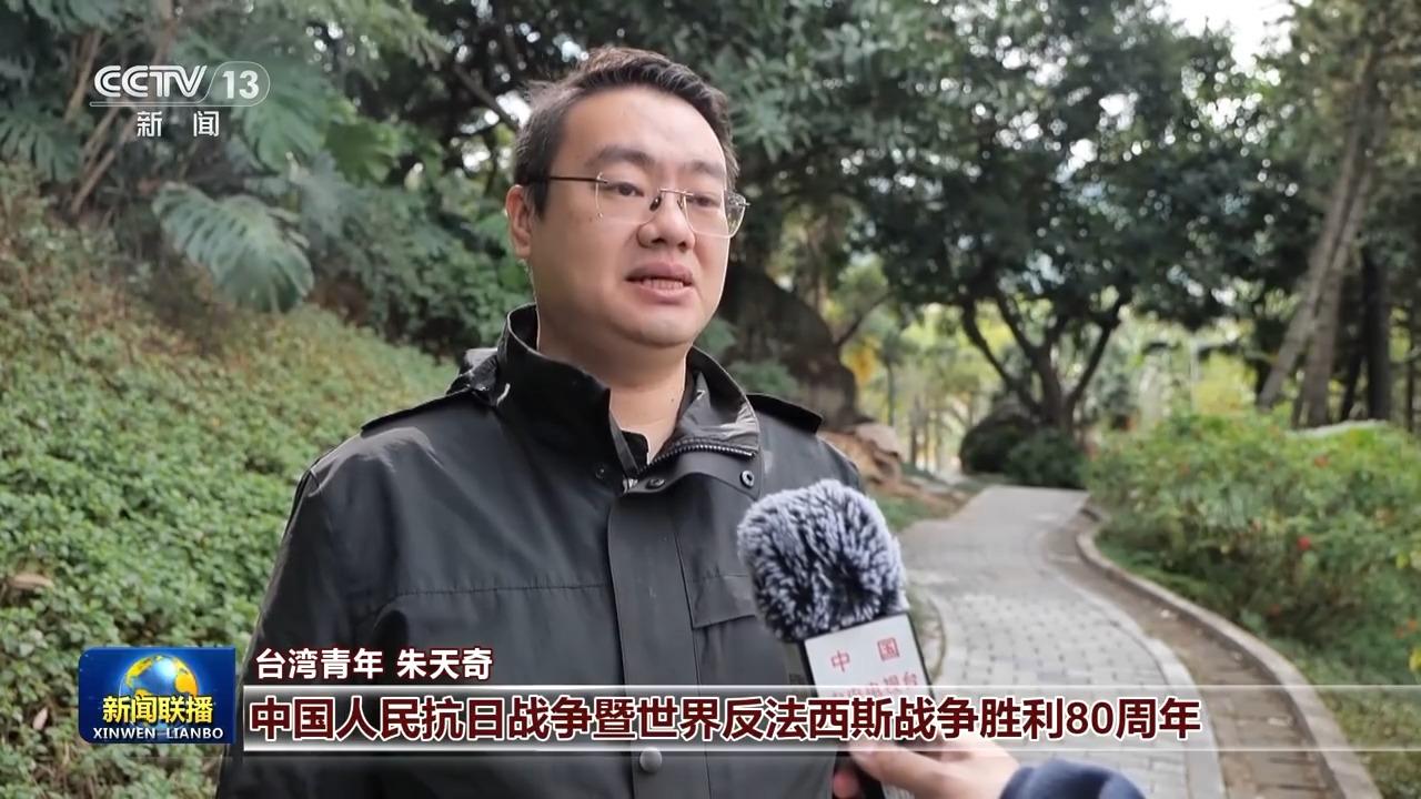 台湾青年 朱天奇:习近平主席在新年贺词中说,这一年,令人难忘的是,我们隆重纪念中国人民抗日战争暨世界反法西斯战争胜利80周年,设立了台湾光复纪念日,80年前,台湾摆脱殖民统治重回祖国怀抱,这是全体中华儿女用巨大牺牲换来的胜利成果。两岸同胞终将同心同德,共同投身于中华民族伟大复兴的磅礴伟力之中。