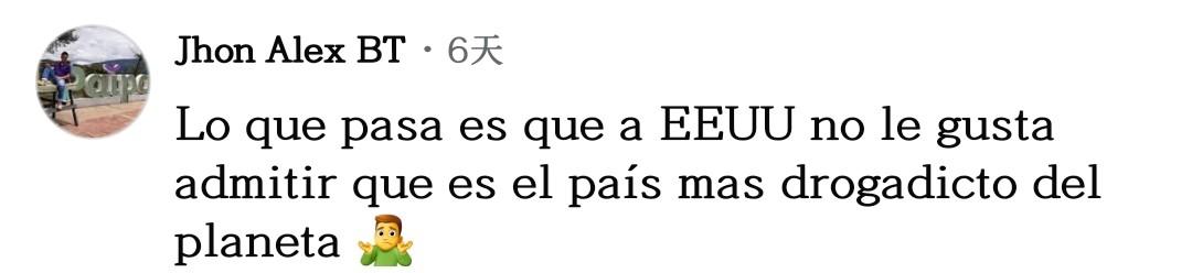 网友胡安乔·奥维多一针见血:“停止(毒品)消费吧,如果没人消费,生产必然下降。莫非特朗普和他的团队是美国国内毒品生意的受益者?”