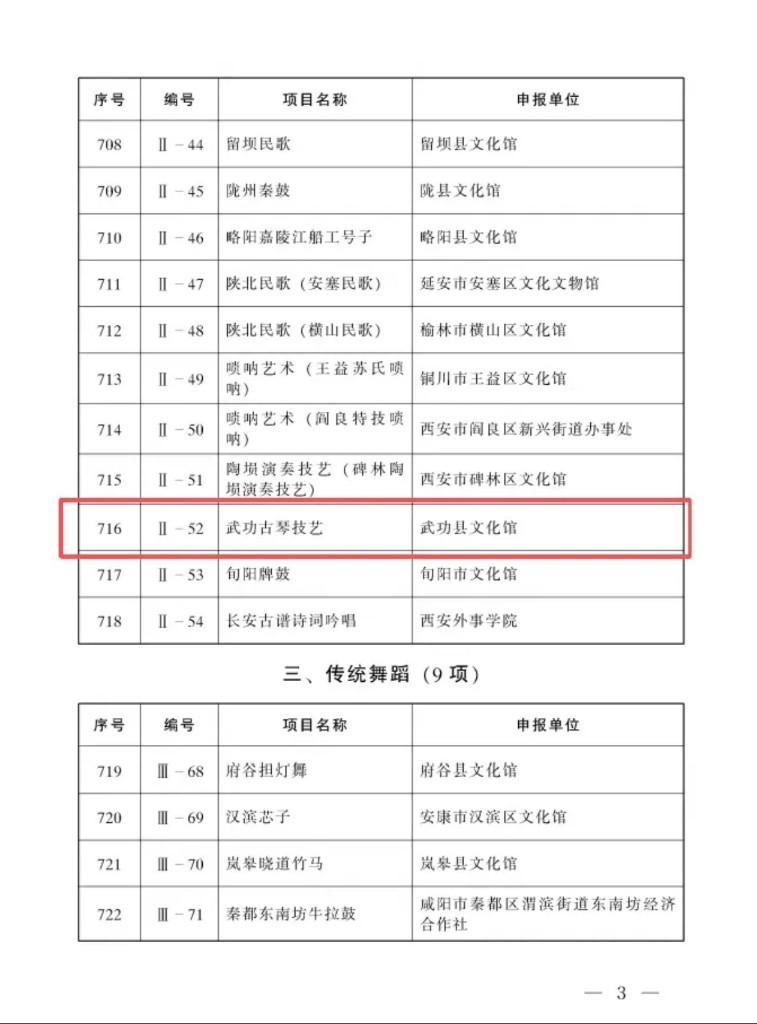 三秦都市报-三秦网讯(弓红丽 李二磊)近日,陕西省政府正式公布第八批省级非物质文化遗产代表性项目名录,咸阳市武功县《武功古琴技艺》《武功长宁醋酿制技艺》《席家铁锅羊肉制作技艺》等 3 个非遗项目成功入选,创下近年来该县新增省级非遗项目数量之最!至此,武功县省级非物质文化遗产代表性项目总数已提升至 10 项,非遗保护传承工作再添亮眼硕果。