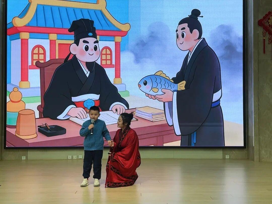 活动中,汉景帝阳陵博物院的教育员结合幼儿学习特点,以趣味猜谜开场,借助小鱼玩偶、视频,为孩子们讲述了“羊续悬鱼”这一汉代廉政故事。孩子们积极互动,化身“小小故事员”,生动演绎了羊续悬鱼明志、清廉拒礼的典故。在情景互动环节,幼儿通过角色扮演学习如何礼貌拒绝不应接受的物品,在体验中将“知礼向善”的价值观内化于心。