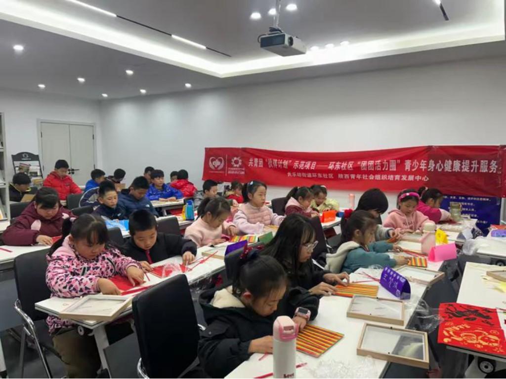 三秦都市报-三秦网讯(记者 姬娜)1月3日下午,西安市碑林区长乐坊街道环东社区联合陕西青年社会组织培育发展中心,开展“团团活力圈”青少年身心健康提升服务之“非遗竹编迎马年 拓福送福暖邻里”主题活动。26名社区青少年齐聚一堂,通过拓印福字、编织竹艺,在动手实践中感受传统文化魅力。