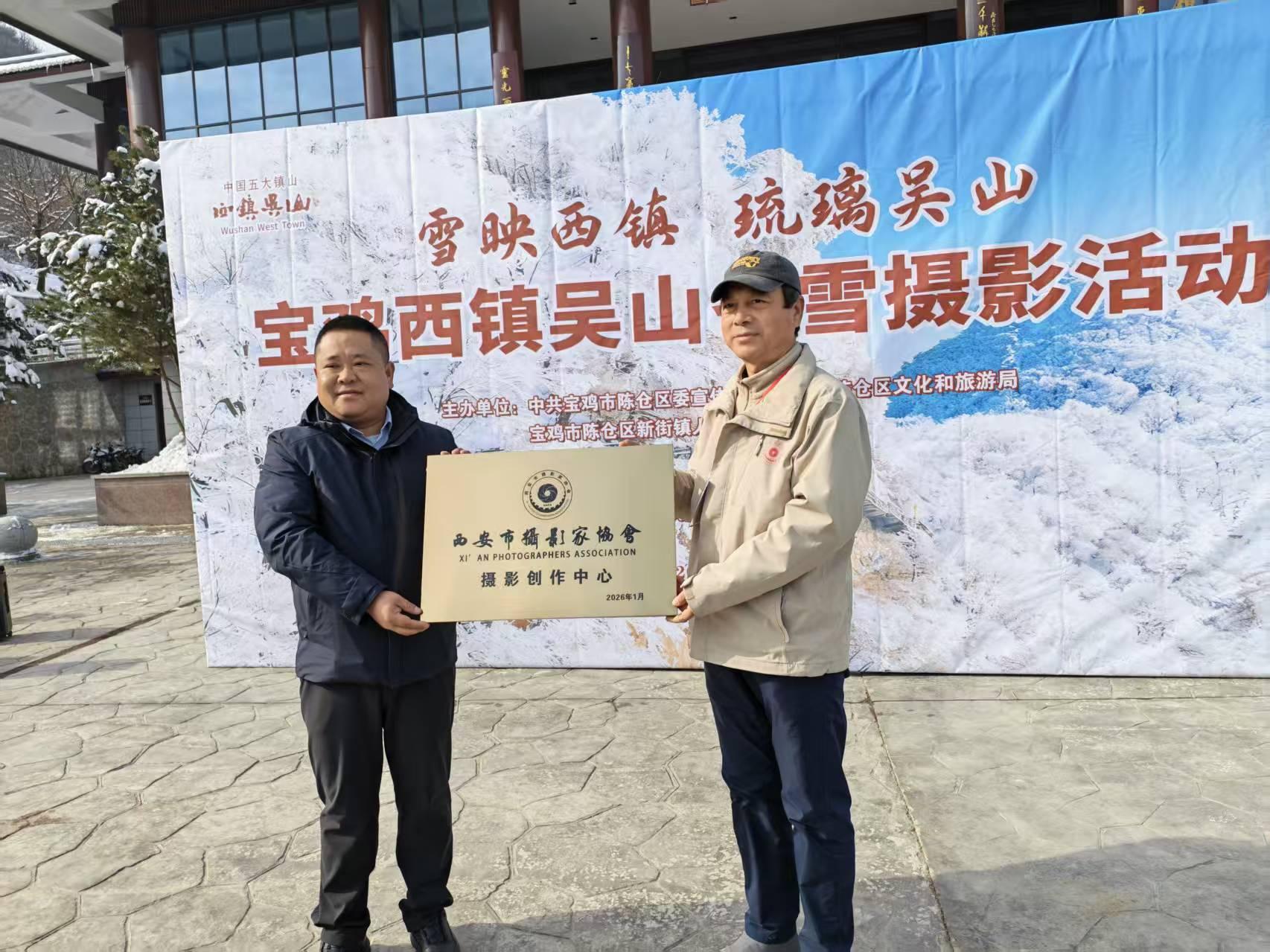 西安市摄影家协会向西镇吴山景区授予“摄影创作中心”的牌匾。随后,摄影家与媒体团队背上器材,深入景区,开启了为期一天的冰雪光影采风之旅。