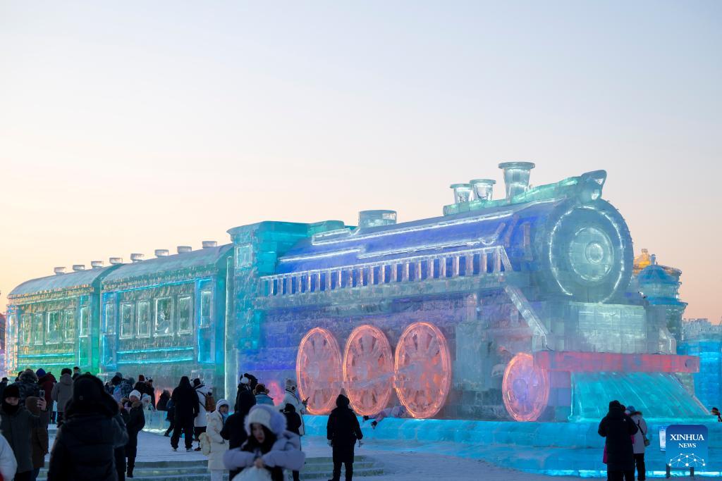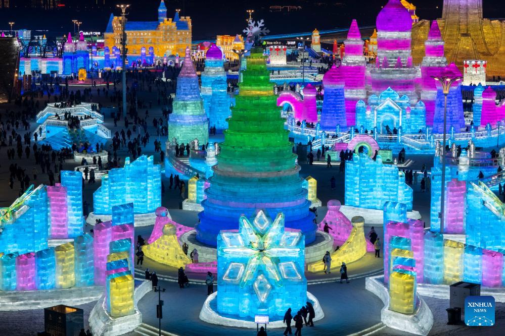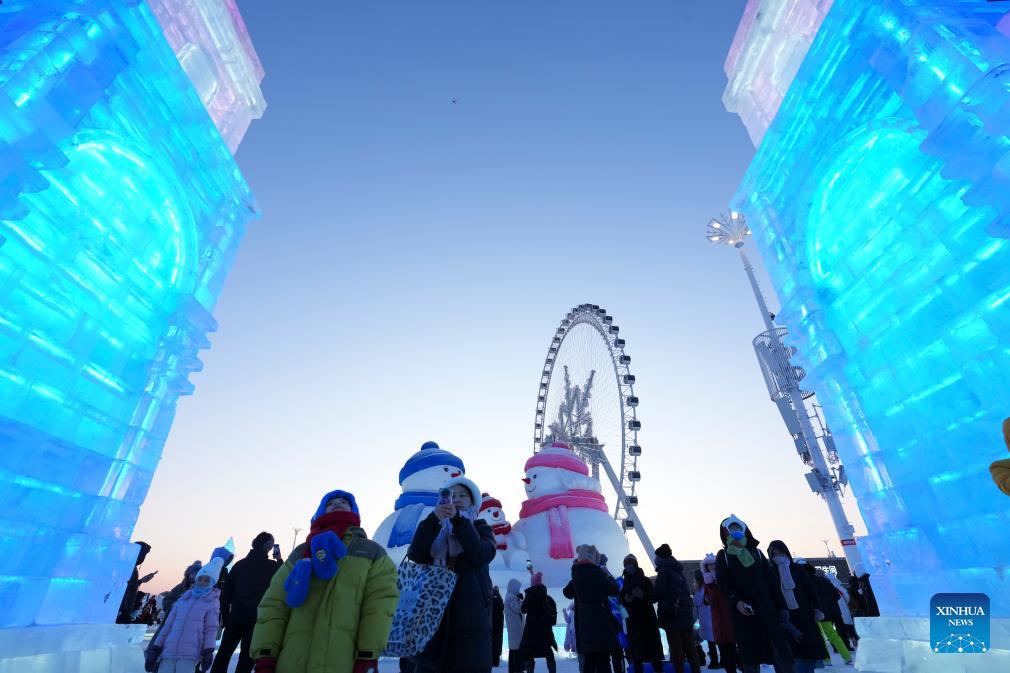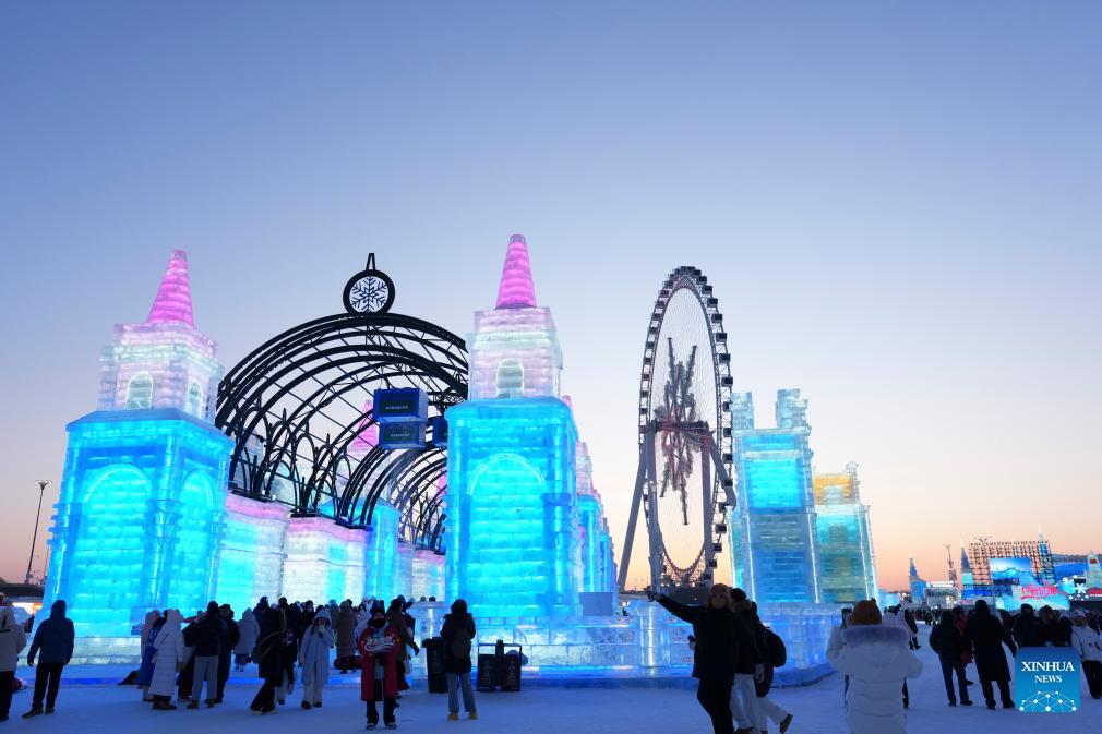 People visit the Harbin Ice-Snow World in Harbin, northeast China's Heilongjiang Province, Jan. 5, 2026. The 42nd Harbin International Ice and Snow Festival kicked off at the Harbin Ice-Snow World here on Monday. (Xinhua/Zhang Tao)