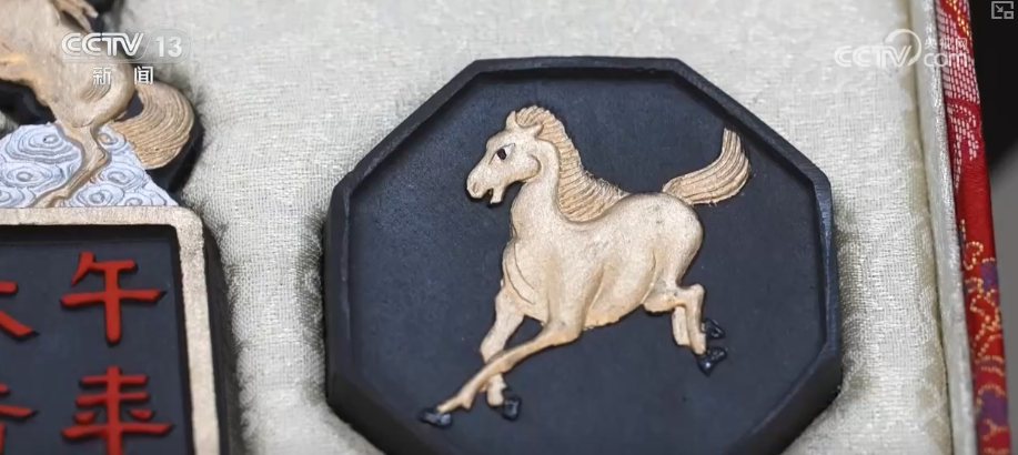 徽墨制作技艺市级代表性传承人周健介绍,2026年除了传统的马年生肖墨,还创新推出了一款“立体唐马墨”,寓意着马到成功,一经上市就供不应求。