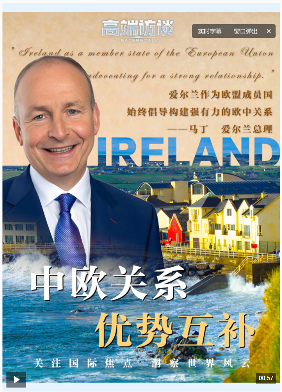 视频丨爱尔兰总理:中欧双边关系存在互补性 愿共谋发展