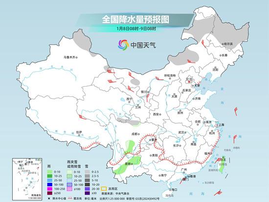 明天,新疆阿勒泰地区、内蒙古东部、黑龙江大部、青海东南部、川西高原北部等地部分地区有小雪或雨夹雪。四川南部、云南西南部和中部、台湾岛东部等地部分地区有小雨。